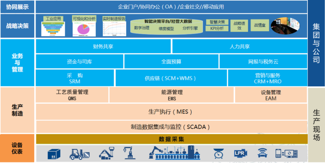 基础化工行业的数字工厂建设是围绕MES系统来展开的,从企业整体出发逐层完成综合信息管理、生产执行管控、设备全生命周期管理、设备运行优化、能源监测与统计分析、物流调度优化、质量控制与分析、与上层信息系统集成等等,最终实现企业生产运营管控一体化。